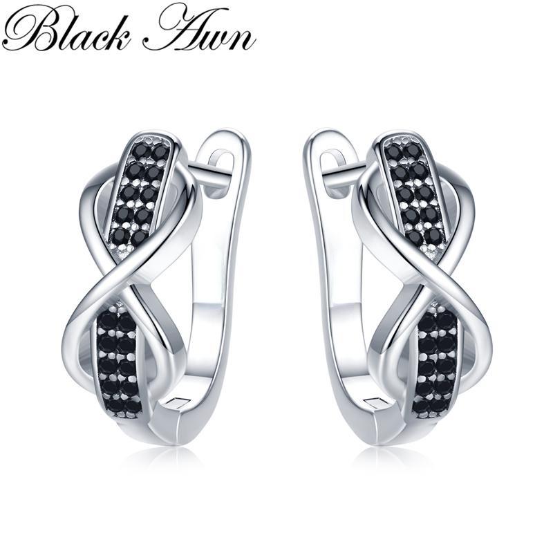 Black Awn Black Stone Infinity Lucky Bow Hoop Earrings