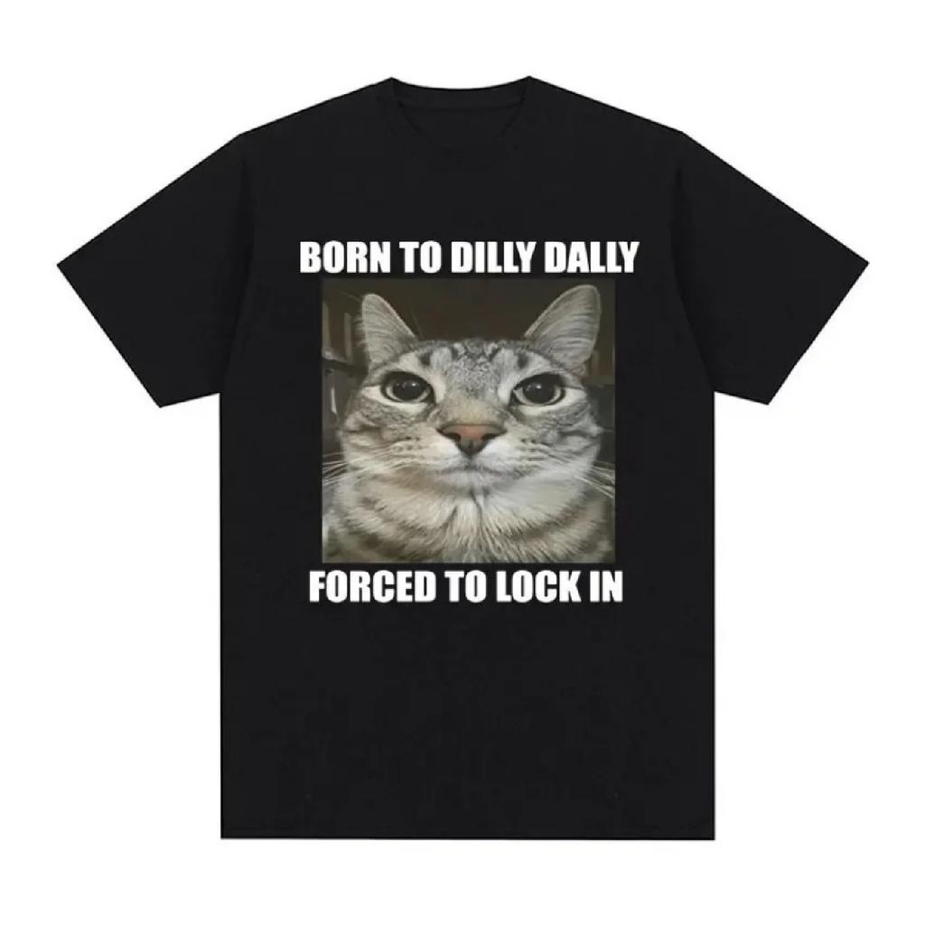 Born To Dilly Dally Forced To Lock In Cat Funny Graphic T Shirt Men Women Casual Fashion Cotton T-shirts Summer Tops