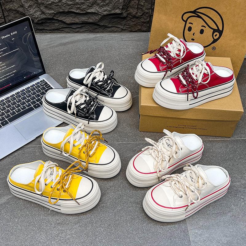 Thick-soled Heightening Half-tray Canvas Shoes for Women's Summer New One-pedal Versatile Flat-soled Lightweight Breathable Board Shoes for Women