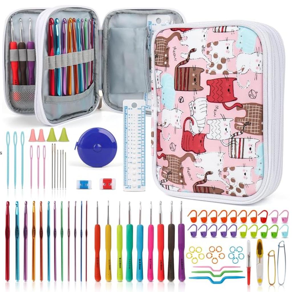 Crochet Hooks Kit with Case, 85-Piece Crochet Hooks Set, Ergonomic Crochet Hook Crochet Needles Weave Yarn Kits DIY Hand Knitting Art Tools for Beginn