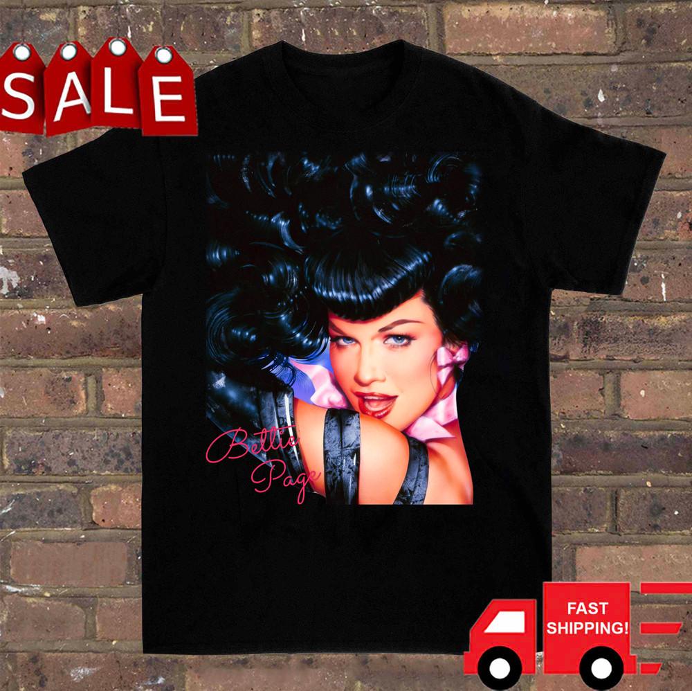 Bettie Page Art Work Face Shirt Short Sleeve Black Unisex S-2345XL 1H0585 Unisex T-Shirt