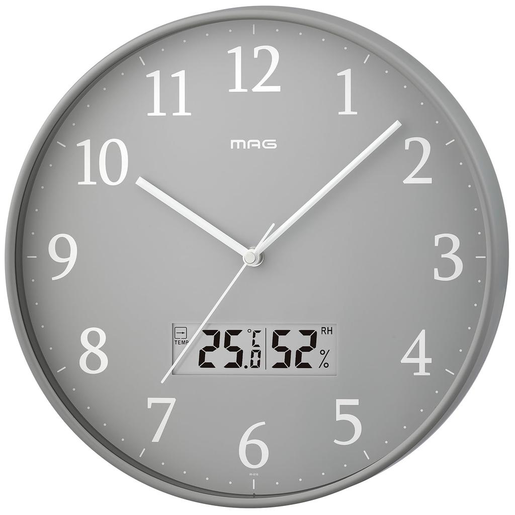 MAG Wall with Thermometer and Interior Nighttime Stop Second Noah Precision Clock, Analog, Radio-Controlled, Hygrometer, Stylish, Cute, Simple,