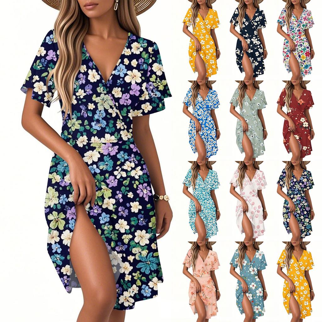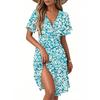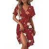 Women's Casual Fashion Dress Vintage Floral Floral Short Sleeve V-neck Dress
