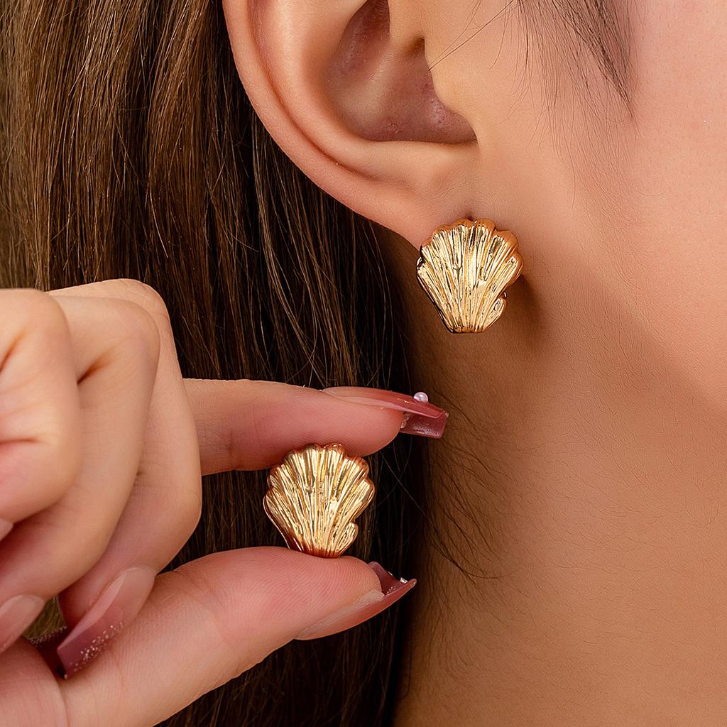Summer Marine Creature Shape Texture Earrings Gold Plated Elegant Sweet Earrings