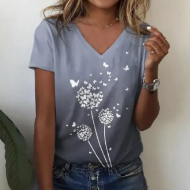 Summer Women Short Sleeve V-neck Oversized T Shirt for Women White Fashion Ladies T-shirt 3d Dragonfly Print Top Casual Clothes