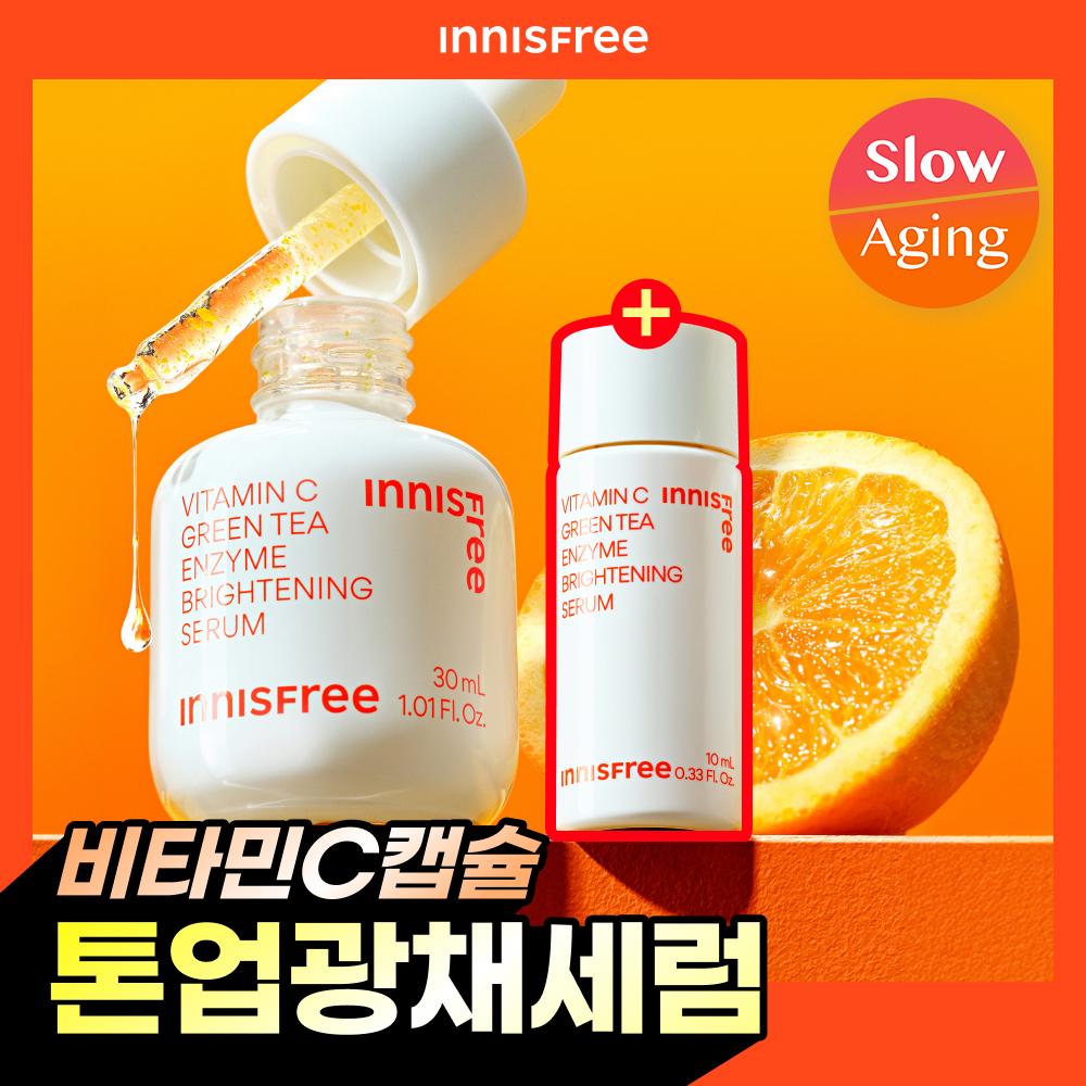 Innisfree Vitamin C Capsule Serum 30ml is a serum aimed at improving skin tone and hydration. This product contains two types of vitamin C derivatives, and the soft yellow melting capsules ensure quick absorption into the skin. The inclusion of Jeju green tea enzymes enhances exfoliation benefits.