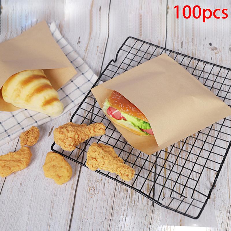 100Pcs Single/Double Opening Grease Resistant Paper Treat Bags Flat Greaseproof Brown For Cookie Snack Sandwich Popcorn