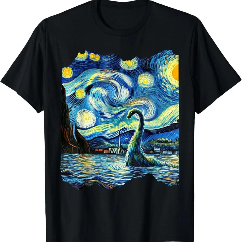 Loch Ness Monster Van Gogh Art Painting Star Sky Night T-Shirt
