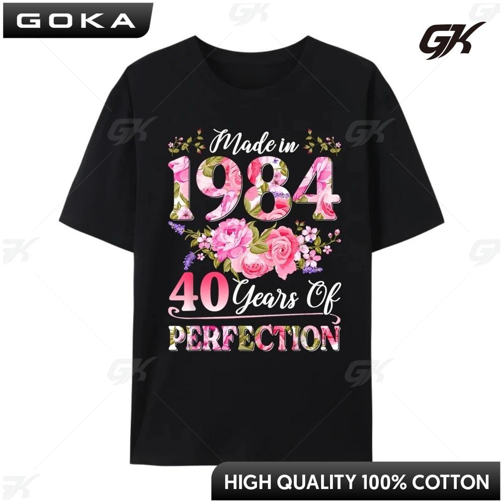 40 Year Old Made In 1984 Birthday Floral 40th Birthday Mens Shirts Graphic T Shirt Mens Clothing Print Round Short Sleeved