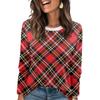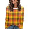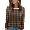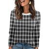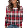 Ladies' Plaid Printed Fashionable Casual Round Neck Long Sleeved Round Neck Top