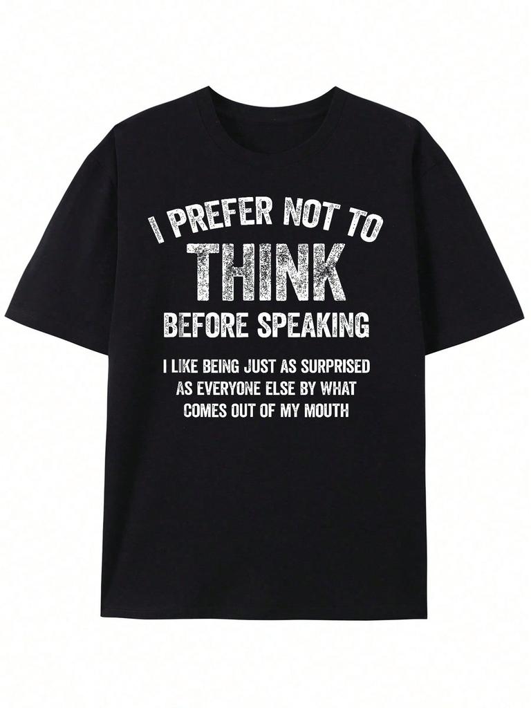Mens I Dont Like To for THINK Before Speak Graphic TShirt 100 Cotton Casual Crew Neck Tee for Casual Attire Casual Wear Tee