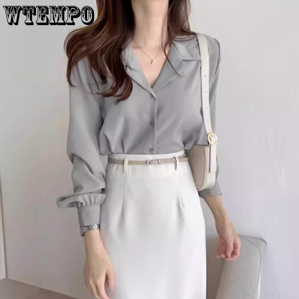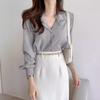Spring Simple Women's Chiffon Shirt Solid Color Temperament Label Collar Long Sleeved Top