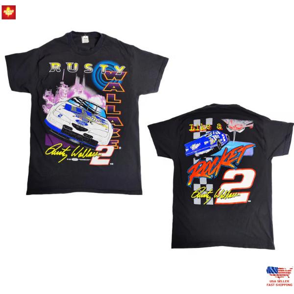 Trending Vintage Rusty Wallace NASCAR Double Sided Like a Rocket T-Shirt Unisex T-Shirt