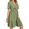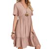 Summer Dress for Women Short Sleeve Pleated V Neck Dress Tiered Swing A Line Dress Casual Flowy Beach