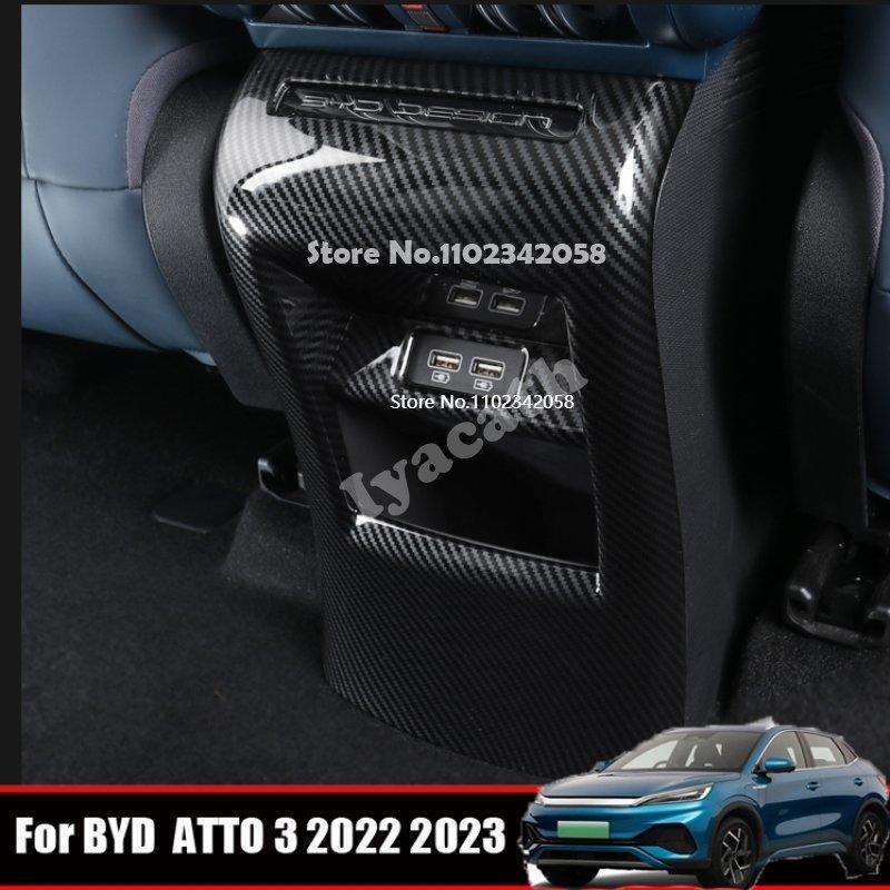 For BYD ATTO 3 YUAN PLUS ABS Carbonfiber Black Rear Air Condition Outlet Back Anti Kick AC Vents Panle Protector Frame