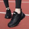Spring and Autumn New Black Leather Waterproof Round Head Sports Shoes, Lightweight Soft-soled Flat-heeled Casual Shoes, Non-slip Single Shoes