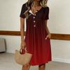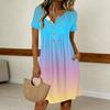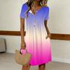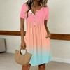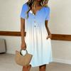 Women's Fashion Gradient Color Printed Round Neck Short Sleeve Button Neck Casual Dress