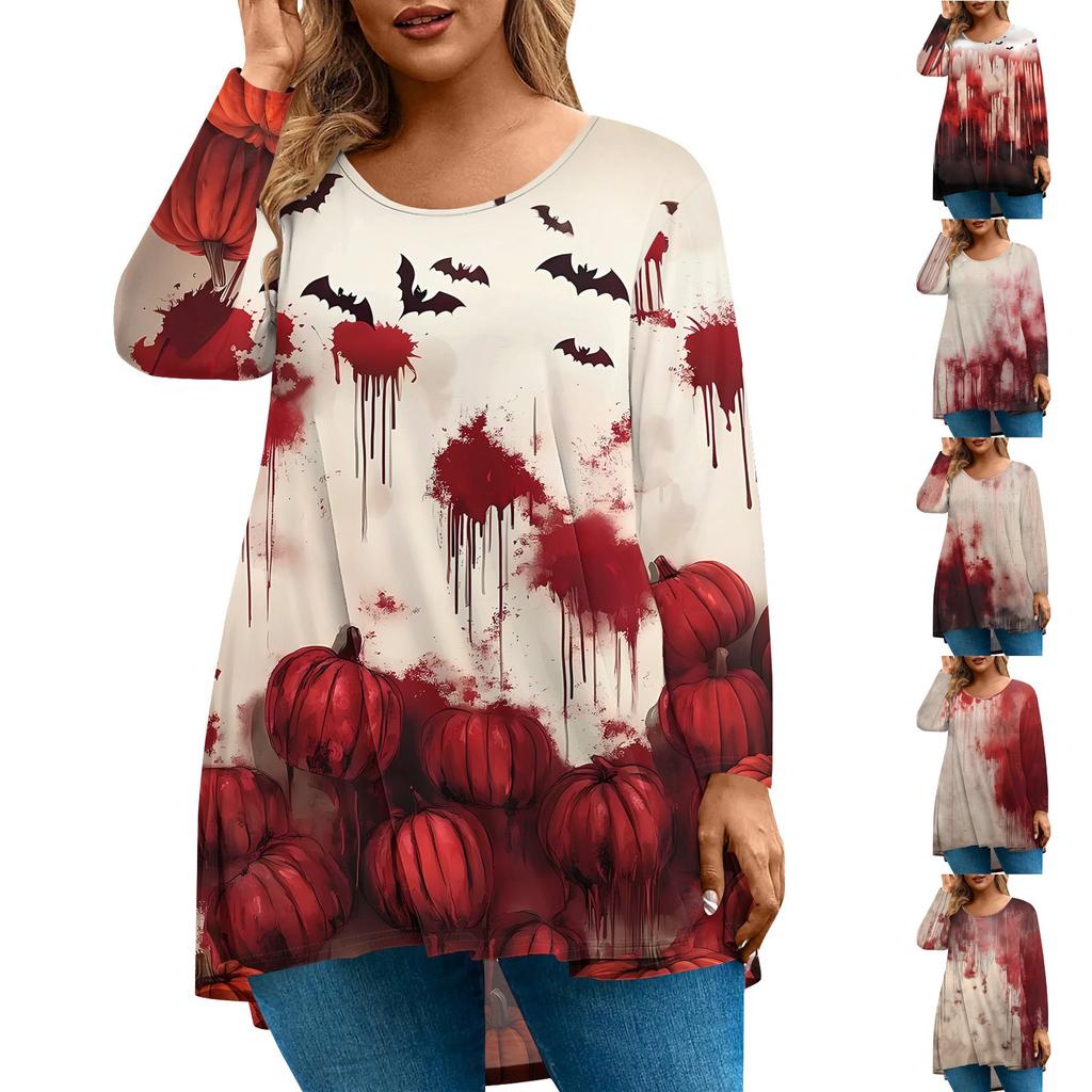 Women's Fashion Large Size Round Neck Long Sleeve Casual Halloween Print Loose Pullover Top