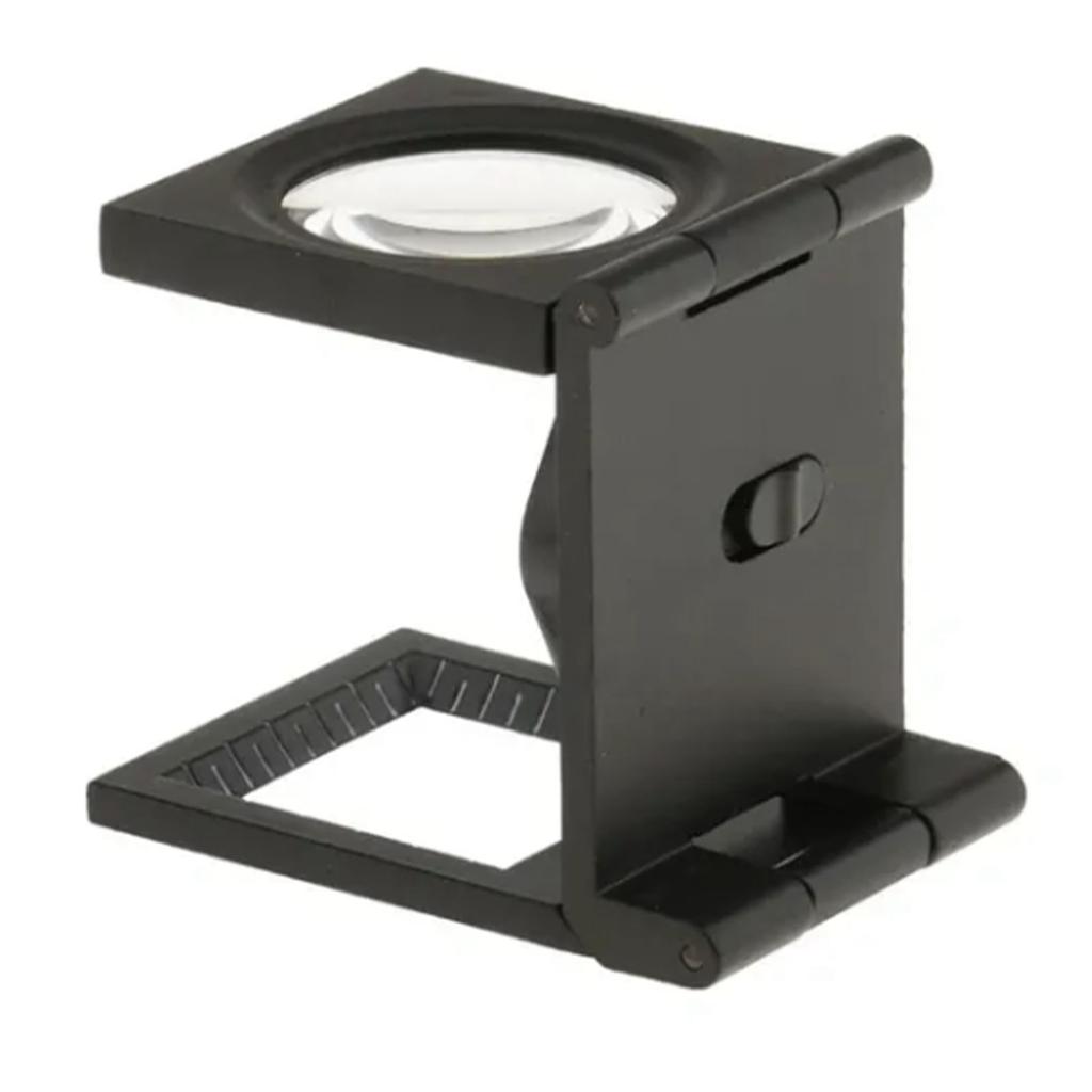 10X Metal Foldable Optical Magnifying Glass Desktop Magnifier Measurement Tools with Scale Lighting and Battery Black