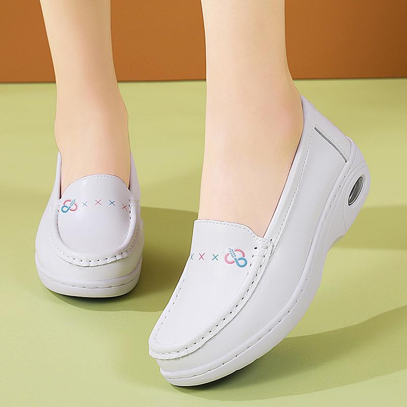 Mother Nurse Work Shoes Women Flat Leather Shoes Casual White Wedge Heel Soft Sole Non Slip Caring Comfortable Shoes