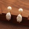 Korean Vintage Natural Freshwater Pearl Earrings S925 Silver Needle Baroque Irregular Pearl Ears Versatile Stud Earrings