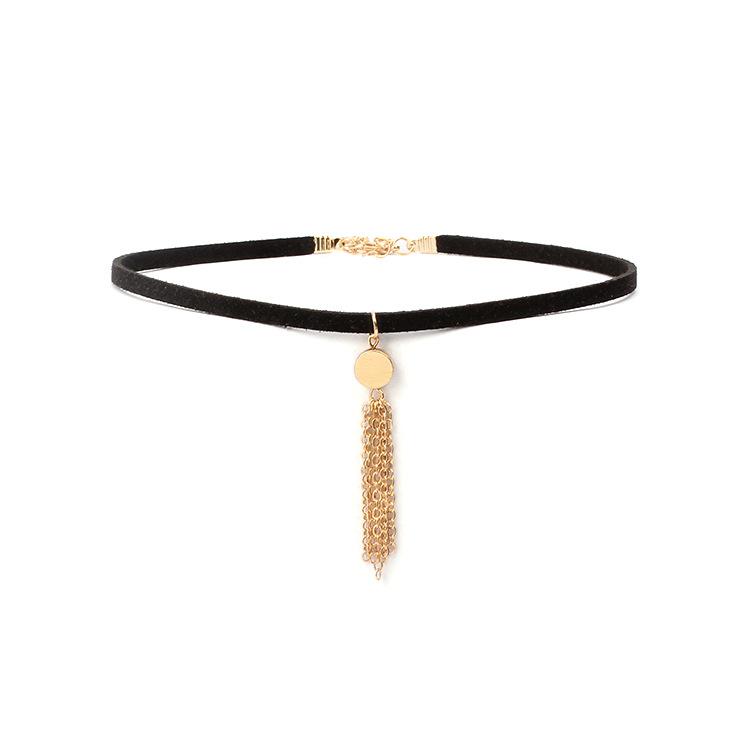 Choker Fringed Neck Chain Velvet Sequined Short Pendant Necklace Disc Clavicle Versatile