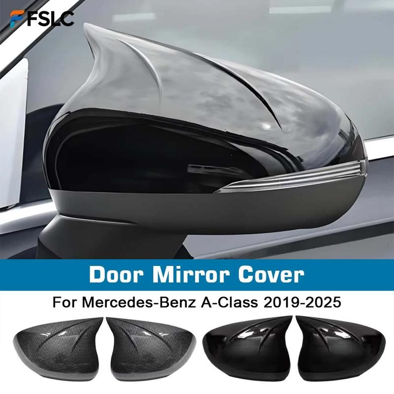 Decoration Door Mirror Cover For Mercedes-Benz A-Class -2025 Carbon Fiber Glossy Black Car Rearview Accessories