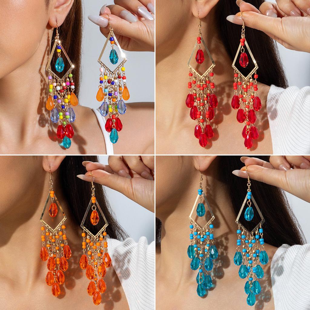 Accessories, Retro Ethnic Style Earrings, Exaggerated Temperament, Long Water Drop Fringed Earrings, Earrings.