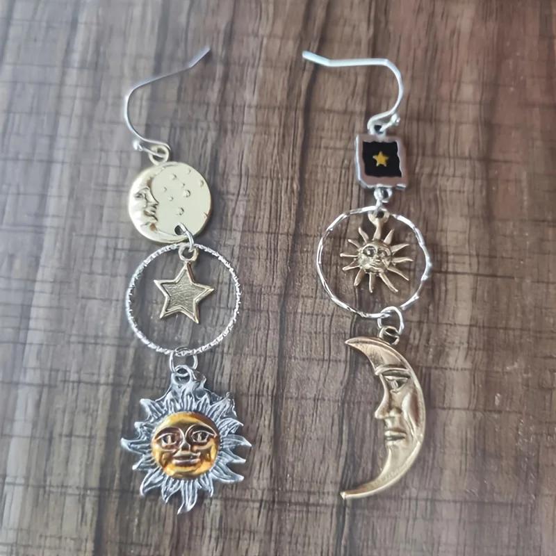 Greek Mythology Face Sun Moon Pendant Creative Design Women Asymmetric Personality Pendant Earrings Party Jewelry Gifts