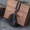 Stainless Steel Nordic Vikings Pendant Necklace Norse Wolf Head Amulet Animal Jewelry Gift with Wooden Box