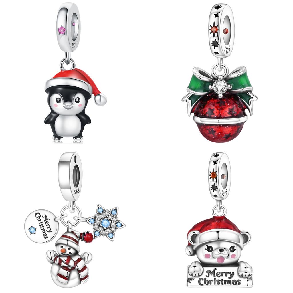 Orstarry 925 Silver Santa Claus Pendant Beads for Bracelet DIY Jewelry Trendy Christmas Gifts Party Charm