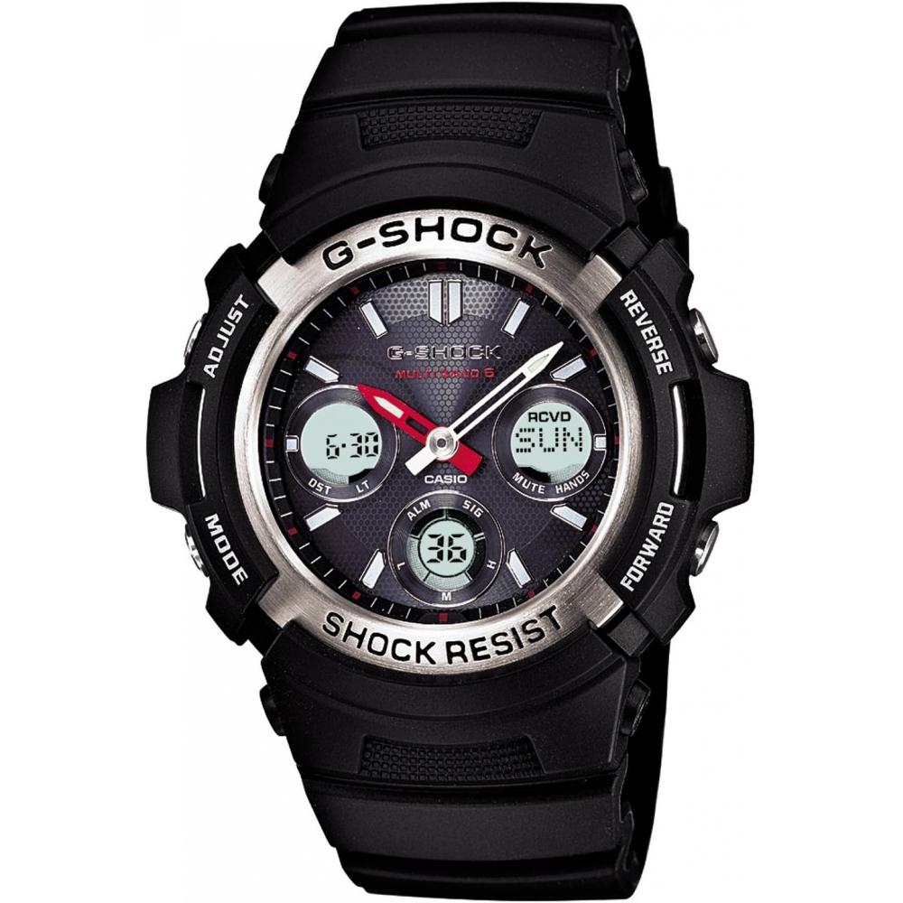 The No CASIO [CASIO] wristwatch G-SHOCK AWG-M100-1AJF incorporates radio solar technology, featuring a basic design capable of displaying practical month, date, and day. For convenience, it has a needle hiding function that allows the hands to be easily moved when overlapping with the LCD display, making it easier to read the data. This stylish combination of digital and analog has enhanced basic performance, showcasing an impact-resistant structure and 20 ATM water resistance. This product receives standard radio signals from six regions to automatically correct the time, and features CASIO's unique solar charging system.