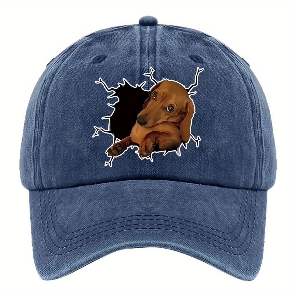 Wall Breaking Dachshund Graphic Baseball Cap Cotton Adjustable Casual Denim Outdoor Hat