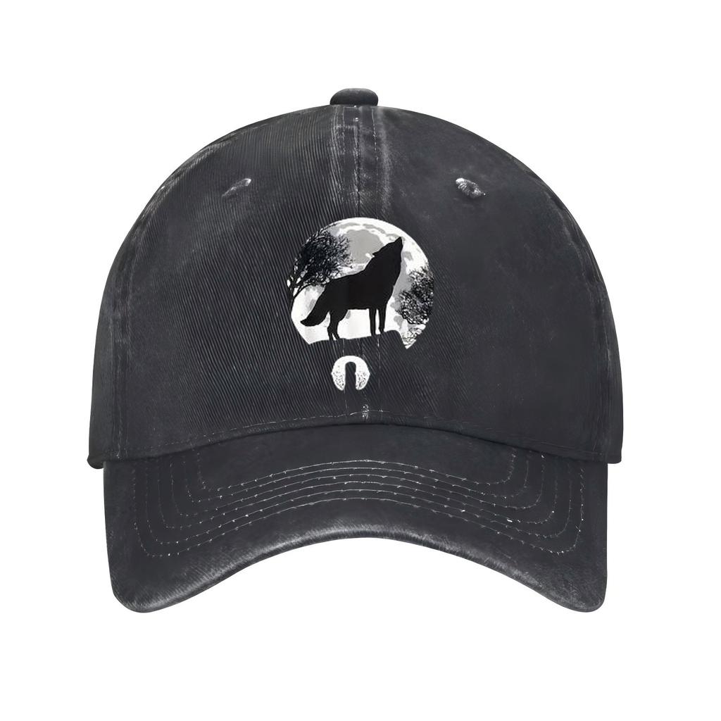 Wolf Howling At Moon Baseball Cap Unisex Adjustable Cotton Casual Black Denim Hat for Outdoor