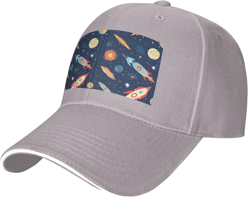 Space Rocket Planet Print Baseball Cap Polyester Casual Adjustable Dad Hat for Adult Unisex