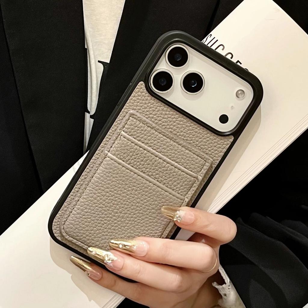 Dual Card Holder Wallet Shockproof Case For iPhone 17 Air 16 15 14 13 12 11 Pro Max Plus Lychee Leather Patterned Bumper Cover