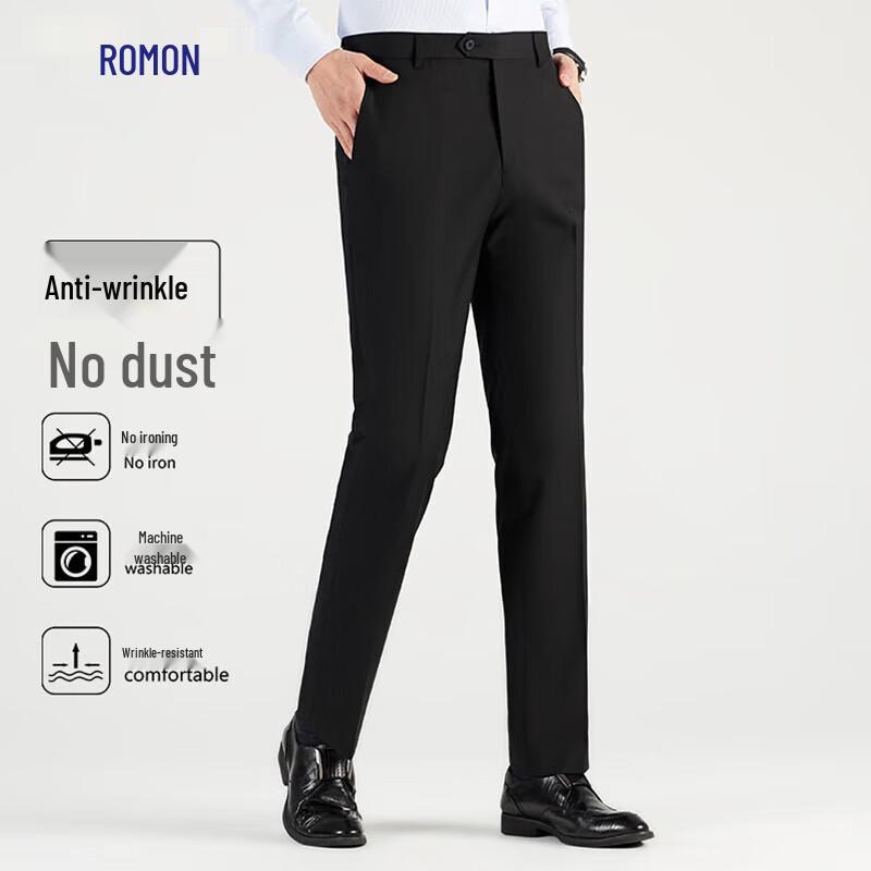 ROMON Men's Business Casual Stretch Straight-Leg Trousers