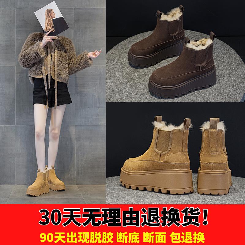 Thick-soled Snow Boots Winter New Velvet Thermal Cotton Shoes Small Height Increase Martin Boots Leather Short Boots