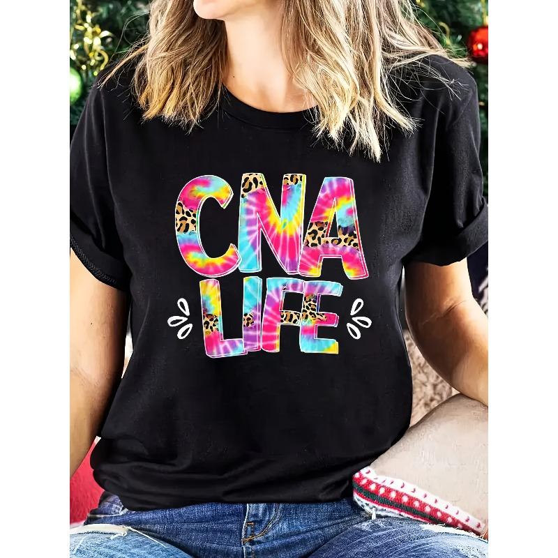 European Sizes Graphic Print T-shirt, Short Sleeve Crew Neck Casual Top for Summer & Spring, Women's Clothing