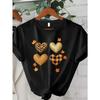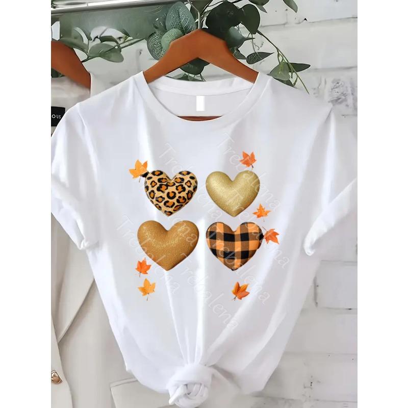 European Size Women's Plus Size T-Shirt - White Background with Leopard Print, Plaid & Glitter Hearts - Casual Everyday Fall/Spring/Summer