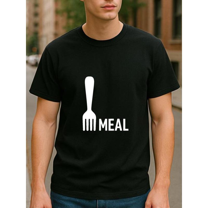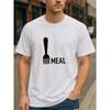 European Sizes Fork MEAL Text Print, Lightweight Round-neck Short-sleeved, Suitable for Daily and Home Wear, Patterned Printed Round-neck T-shirt
