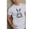European Sizes Men's Polyester Crew Neck T-Shirt with Geometric Rabbit Print, Casual Summer Knit Fabric Top with Slight Stretch, Regular Fit