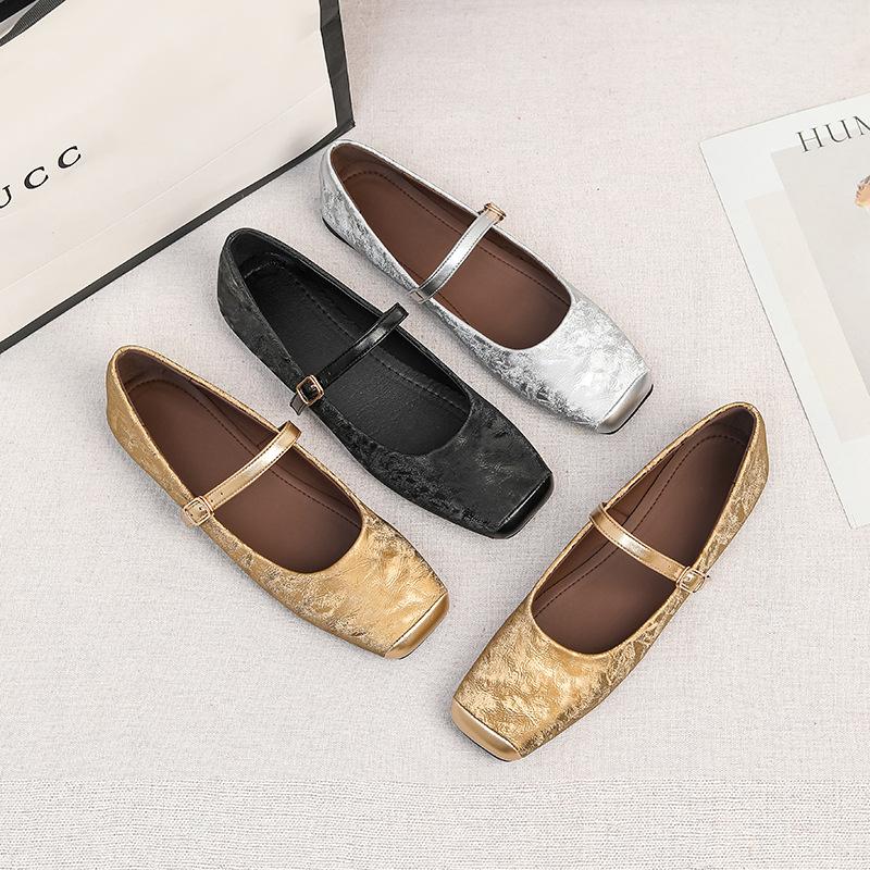 Women's Square Toe Mary Jane Flats Casual Ballet Shoes Walking Shoes with Adjustable Strap Slip On Comfortable Work Flats Soft Dressy Shoes for Women