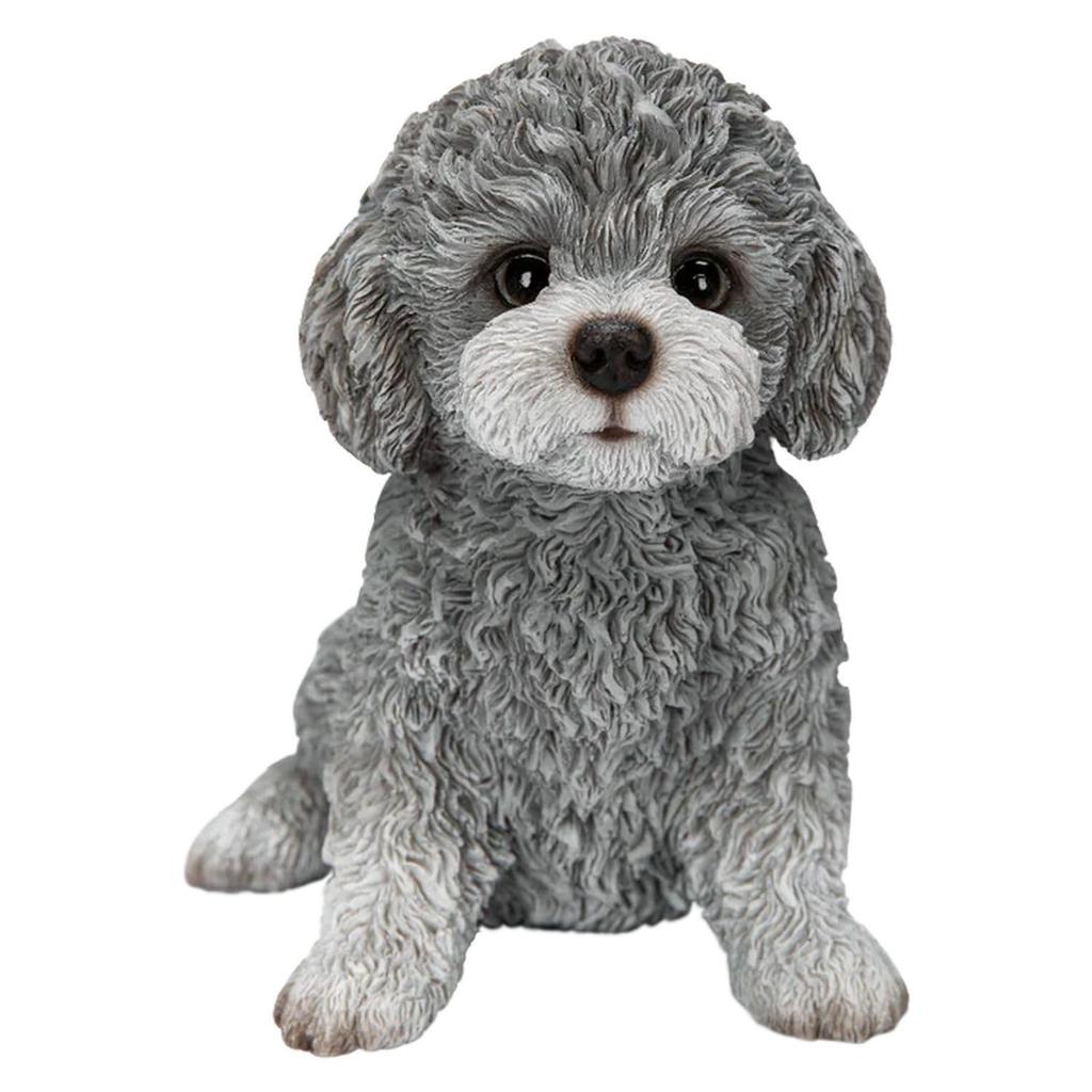 Ubia Sitting Toy Poodle Gray, 13 X 9 X 13.5 Cm, Doll Figurine, Animal Ornament, Garden Decoration, Realistic, Cute Dog, H24126-2