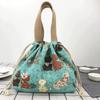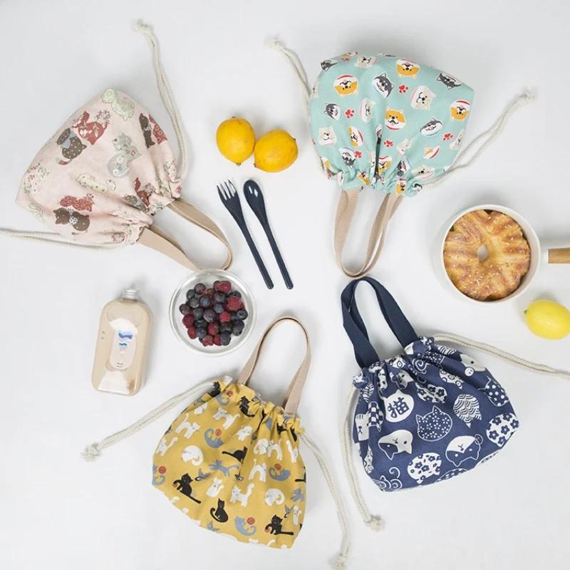 Japanese Cute Bento Bag Handheld Canvas Bag Cartoon Portable Drawstring Cutlery Storage Drawstring Bags for Two Lunch Boxes