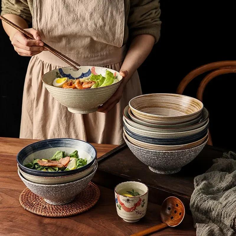Japanese and Wind Creative Ceramic Bowl Household Instant Noodle Bowl Ramen Hat Bowl Household Commercial Salad