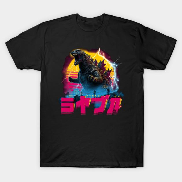 Men Black Print T-shirt Godzilla No-Cut Transfer Paper Print Cotton Tshirt