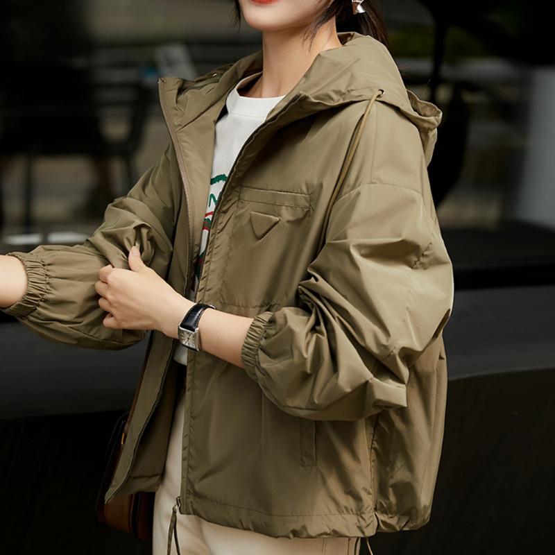 Light Anti-wrinkle Memory Fabric Casual Short Hooded Jacket Outdoor Trench Coat Jacket Women's Black Spring New