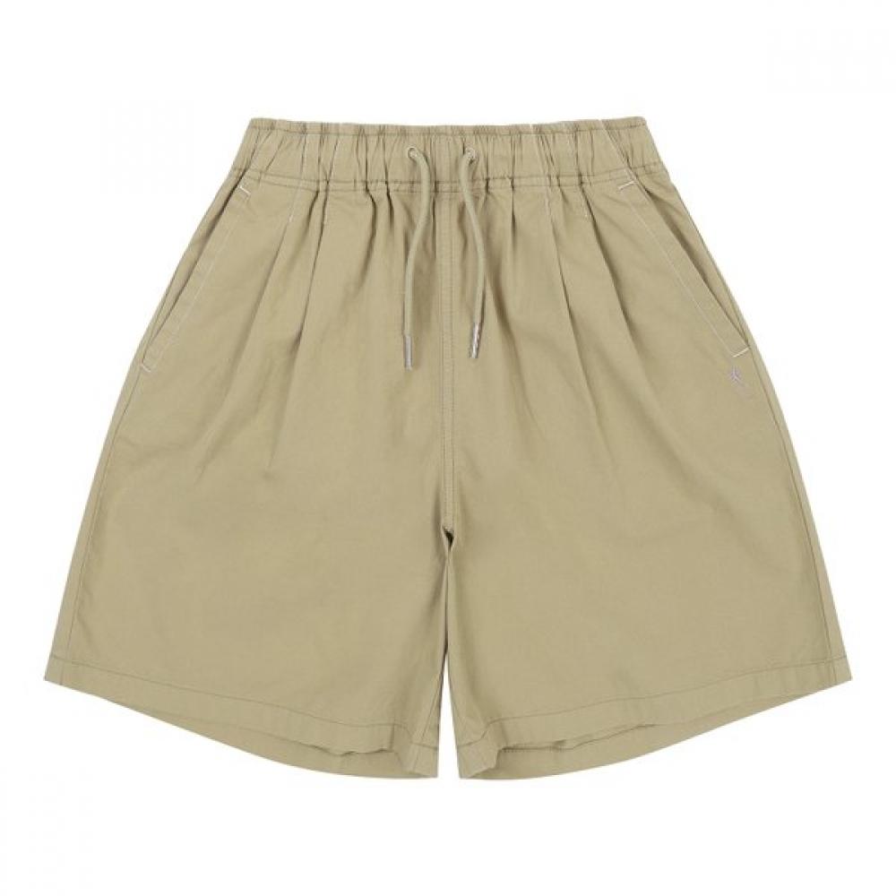 The AZB4PT02BG beige woven shorts with elastic waistband feature a voluminous design, providing comfort with its elastic band. The bottom has a relaxed fit with dart details at the front and back, making it suitable for junior girls. Styled with a lizard embroidery and label for a cute and stylish look.