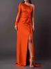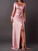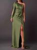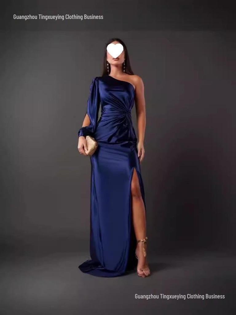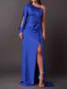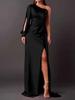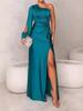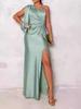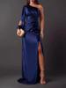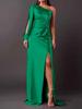 New Women's One-Shoulder Raglan Sleeve Pleated Waist Slit Sexy Long Dress